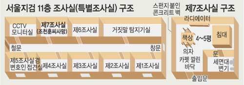 각 특조실은 4∼5평 규모로 내부 화장실에는 세면대와 변기만 있고 욕조는 없었다. 제1∼5조사실에는 창문이 있으나 조씨가 숨진 제7조사실과 6조사실에는 창문이 없다.