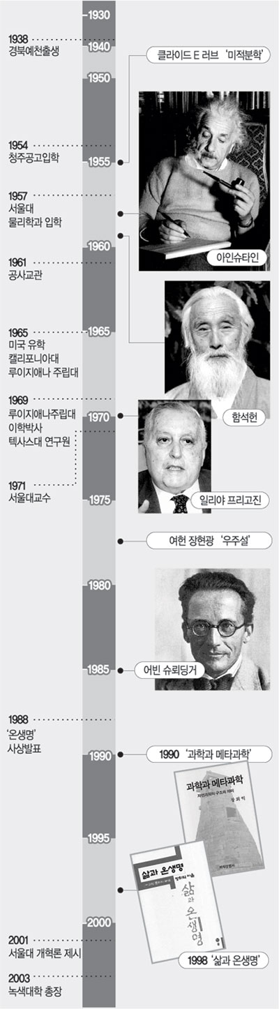 1971년 서울대 교수로 부임한 그는 연구 방향을 바꿔야 했다. 대형컴퓨터가 필요한 물리학 연구를 계속할 수 없었던 당시 상황에서 그는 물리학의 이론적 성격에 관해 연구했고 동시에 ‘생명’ 연구에도 박차를 가했다.