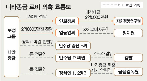 수사팀은 민주당 중진 인사 H씨와 P의원 등이 나라종금 대주주인 김호준(金浩準) 전 보성그룹 회장과 안상태(安相泰) 전 나라종금 사장에게서 돈을 전달받은 정황과 관련자 진술을 대부분 확보한 것으로 보인다.