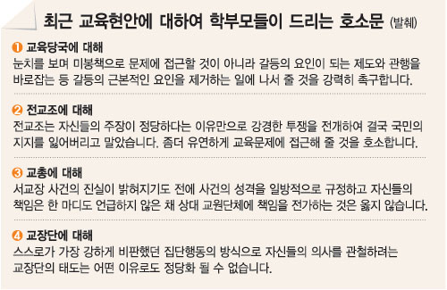 특히 그동안 각종 교육 현안에서 전교조와 비슷한 목소리를 내온 ‘참교육 학부모회’가 전교조의 강경 투쟁 방식을 이례적으로 비판해 눈길을 끌었다.