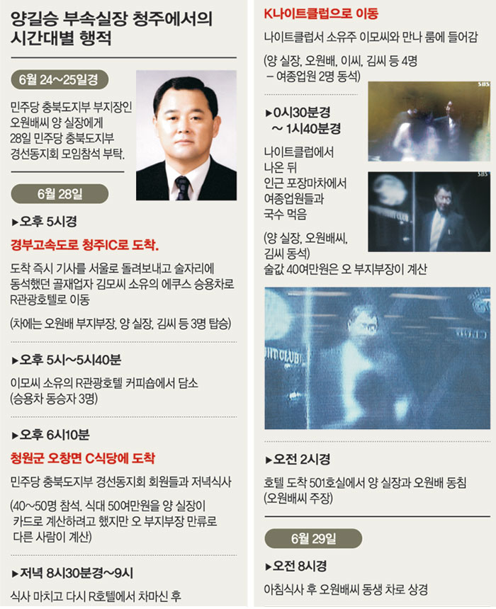 한 관계자는 “지난달 30일 양 실장의 술자리 장면이 찍힌 사진이 있다는 첩보를 입수하고 긴가민가했다”며 “사진 정도가 아니라 근접 촬영된 화면을 보고 경악을 금치 못했다”고 말했다.