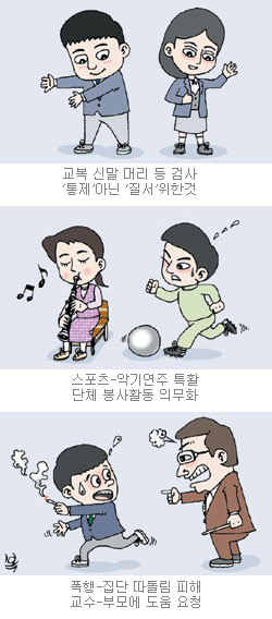 ▽학교생활 규정=학교생활 규정은 학생들을 통제하기 위한 것이라기보다 보다 질서 있고 즐거운 학교생활을 위한 것이다. 각 학교는 학생, 학부모, 교사 등의 의견을 모아 규정을 만들고 수정한다.