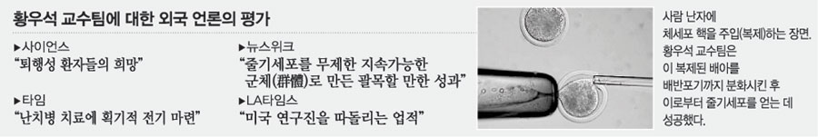 황 교수는 “우리의 손재주가 뛰어난 것은 난자를 공짜로 대량 확보할 수 있었기 때문”이라며 “연구원들이 마음껏 실험할 수 있는 재료가 있고 쉴 새 없이 연구하는데 누가 따라올 수 있겠느냐”고 말했다.