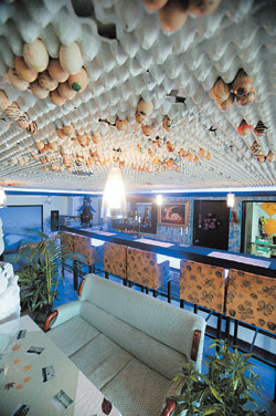 섬진강 구만제 뗏목 선착장에 있는 카페. 계란 껍질에 방문객의 이름이나 그림을 그려넣어 방명록처럼 천장에 붙여놓았다.