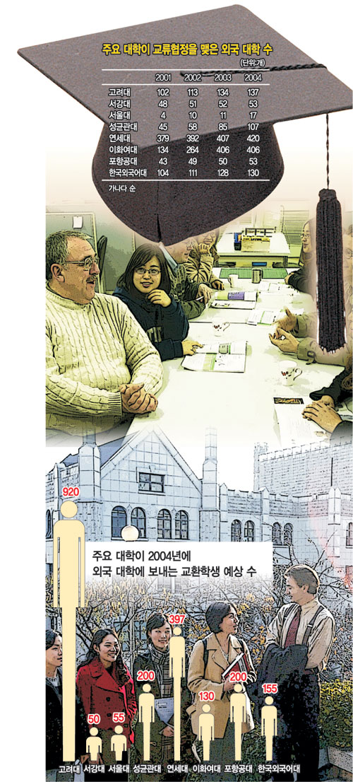 이화여대는 미국의 루저스대와 공동개설 교과목을 만들어 양 학교의 학생들이 함께 실시간 화상수업을 받는다. 또 ‘외국대학박람회’를 정기적으로 열어 학생들에게 세계 42개 대학으로의 진학을 도와준다.