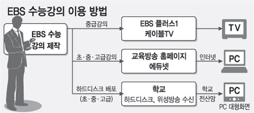 고교 2학년생 학부모 김모씨(43·여·서초구 반포동)는 “EBS 일주일 방송 분량을 요약 정리해 학생들이 매일 방송을 듣지 않아도 되도록 해준다고 광고하는 학원이 벌써 생겼다”며 “비용이 좀 들더라도 시간 절약을 위해 아이를 학원에 보낼 계획”이라고 말했다.