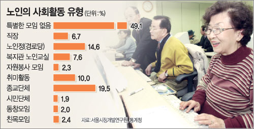 이번 조사에서 서울에 거주하는 65세 이상 노인 4373명 중 37.8%는 소득이 전무했고 50만원 미만은 31.7%였다. 이어 50만∼100만원(17.4%), 100만∼150만원(5.9%), 150만∼200만원(3%) 순이었다.