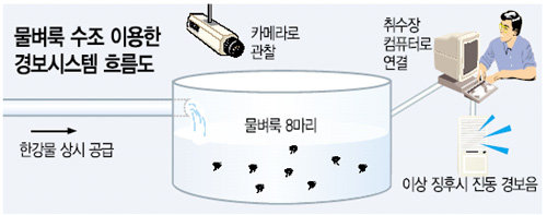 서울시 산하 상수도사업본부(본부장 김흥권)는 8일 “국제테러조직에 의한 수돗물 테러와 날로 증가하고 있는 유해화학물질의 조기 감시를 위해 생물경보시스템을 도입해 운영할 예정”이라고 밝혔다.