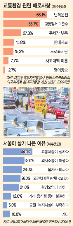 특히 한국의 교통문제는 주한외국인들이 손꼽는 문제점 1위.