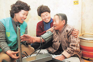 ![]() 아줌마 자원봉사자들이 독거 노인들을 방문해 건강상태를 체크하며 이야기를 나누고 있다. 이웃을 향해 아줌마들이 내민 손이 따뜻한 세상을 만들어내고 있다. 동아일보 자료 사진 |