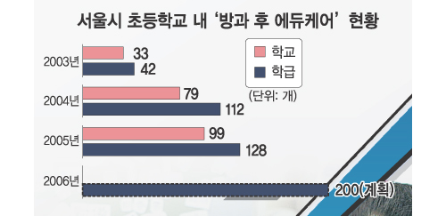 ▽에듀케어 확대=맞벌이 부부 등을 위해 초등학교에서 정규 수업이 끝난 뒤 학생들을 맡아 가르치는 ‘에듀케어’가 인기를 끌고 있다.