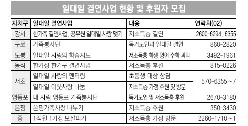 현재 1300여 명의 전 직원이 1500여 가구를 맡아 후원하고 있다. 구는 개인, 기업 등을 대상으로 자원봉사자를 모집 중이다.