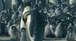 수천 마리의 황제 펭귄 암수 무리와 갓 알에서 깨어나 보송보송한 털이 날리는 귀여운 새끼들. 황제 펭귄 무리가 오모크로 향하는 행렬은 흡사 검은 옷을 입은 사람들의 행진처럼 보인다. 놀랍게도 이들의 얼굴과 목소리에는 슬픔과 기쁨이 담겨 있다.