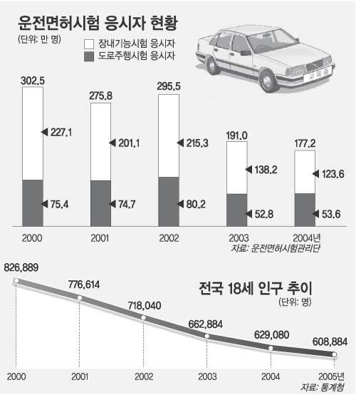통계청에 따르면 1종보통과 2종보통 면허를 취득할 수 있는 만 18세 인구의 경우 2000년 82만여 명에서 2005년 60만여 명으로 해마다 그 수가 2만∼5만 명가량 줄고 있다.