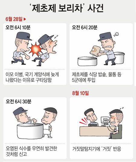 조 이병은 당초 제초제가 든 보리차를 마셨다고 말했으나 수사 과정에서 자신이 안전한 물을 마셨다는 것을 알고도 겁이 나 사실을 말하지 않고 입을 닫았다. 그는 병원 정밀검사에서 별문제가 없어 이달 5일 퇴원했다.