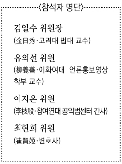 ▽최현희 위원=사회 전반에 대한 언론의 의혹 제기는 긍정적 측면이 큽니다. 극소수가 아는 의혹 내용은 언론을 통해서만 사회문제화가 가능한 것 아니겠습니까. 의혹 사안을 잘만 다룬다면 사회 발전에 기여할 수 있겠지요. 이는 언론의 책무입니다. 다만, 책임 있게 보도하고 명예훼손의 여지를 없애는 철저한 검증이 필요합니다. 낙종을 걱정해 ‘일단 쓰고 보자’는 관행과 특종 욕심 때문에 ‘잘되면 좋고 아니면 말고’ 식의 무책임한 한건주의가 팽배한 것은 아닌지 걱정됩니다.