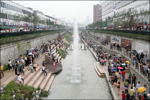 이로써 1958년 6월 급속한 사업화에 밀려 회색 콘크리트에 갇혔던 청계천이 반세기 만에 옛 모습을 되찾았다.