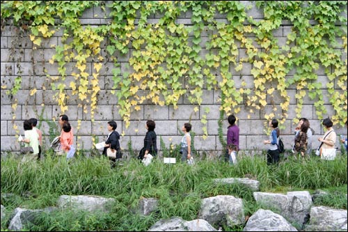 특히 나이 드신 할아버지, 할머니들이 달라진 청계천을 많이 찾았다. 징검다리를 건너며 소녀처럼 즐거워하는 할머니와 바위위에 앉아 옛 추억에 잠기는 할아버지도 있었다.
