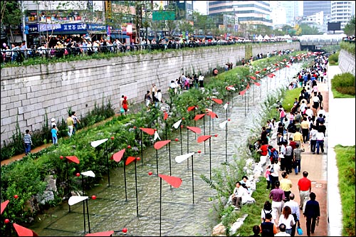 김진옥(33·여·서울 신림동) 씨도 “나라의 나쁜 일이 청계천 물에 모두 떠내려갔으면 좋겠다”며 “청계천 복원을 계기로 서울이 자연과 사람이 함께 공존하는 도시가 됐으면 좋겠다”고 기뻐했다.
