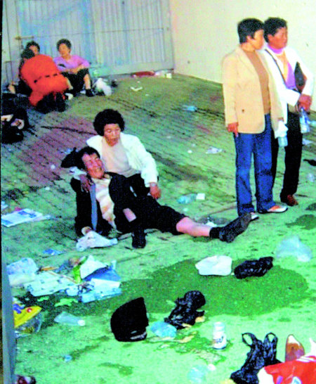 MBC 가요콘서트가 열릴 예정이던 경북 상주시민운동장에서 3일 11명이 숨지고 78명이 다치는 참사가 빚어졌다. 출입문이 열리면서 사람들에 밀려 쓰러졌던 시민이 고통스러워하며 가족의 도움으로 안정을 취하고 있다.