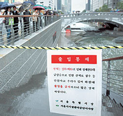 “비올 땐 청계천 산책로 출입 삼가세요.”