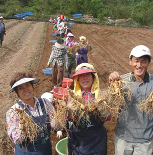 11일 오전 파주시 군내면 읍내리 조규성(48) 씨의 인삼밭에서도 부녀자 10여 명과 트랙터가 동원돼 6년근 인삼을 캐느라 여념이 없었다.