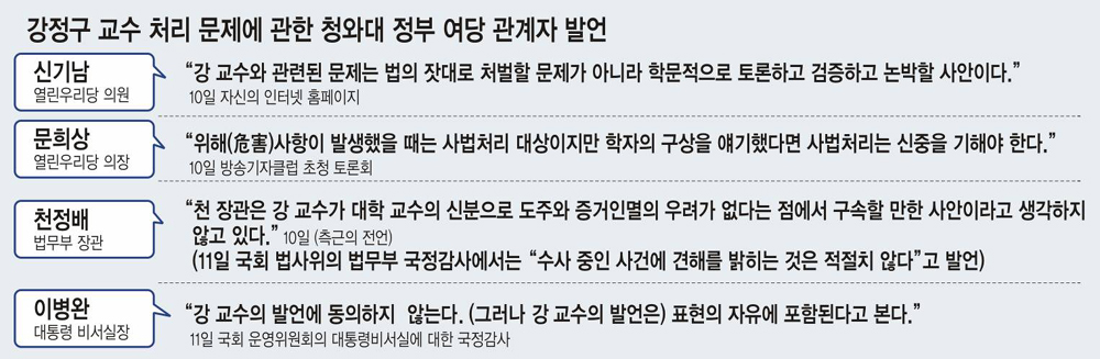 ▽청와대와 여권의 조직적 대응=강 교수 문제에 대해 청와대와 여권은 조직적인 움직임을 보이고 있다.