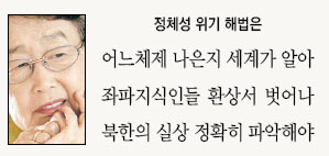 “지성의 위기가 정체성의 위기를 불러왔다고 본다. 지식인들이 추상적인 이상과 구체적 현실을 구별하지 못한 채 너무도 자명한 것을 오도하고 있다. 남북관계의 인식에서 북한 동포를 사랑하고 평화적으로 공존하면서 통일을 이루자는 바람과 북한의 현실을 있는 그대로 보는 능력은 별개인데 이를 구별하지 못하고 있다. 지식인들이 민주화운동 때 강조하던 인권 자유 등의 가치들을 북한에는 적용하지 않고 있다. 북한이 공산주의라고 하면서도 권력세습 체제를 유지하는 문제, 주민을 먹여 살리지도 못하는 현실, 또 역사상 유례를 찾아볼 수 없는 억압적 폐쇄 체제라는 사실을 알지 못하고 알려고도 하지 않는다. 그런 나라를 만든 김일성 주석을 위대한 지도자라고 하는 학자도 있다. 어느 체제가 더 나은지는 세계에서 이미 판정 났는데 우리만 외면하고 있다.”