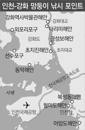▽강화도 인기 포인트=자동차로 쉽게 갈 수 있는 강화대교와 초지대교 인근의 염하 해안 곳곳에서 망둥이 낚시를 즐길 수 있다.