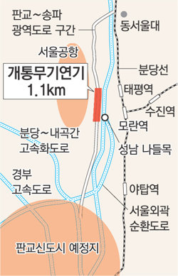 ▽도로 개통 무산 위기=성남시는 이달 13일 도로를 개통할 예정이었지만 공군 측의 강력한 항의를 받고 무기한 연기했다.