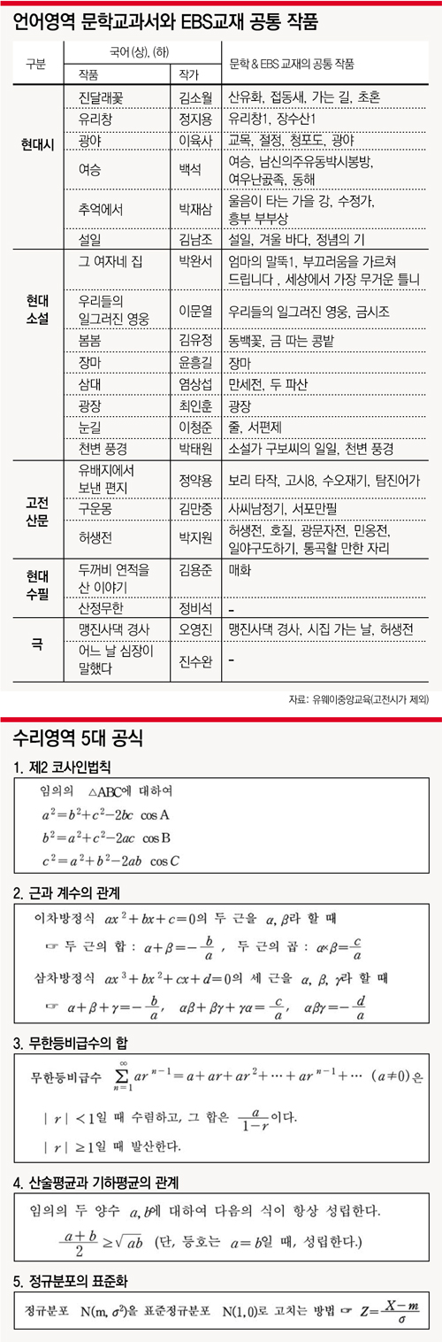 문학작품은 국어교과서에 실린 작가의 여러 작품 중 문학 교과서와 교육방송(EBS) 강의교재에 공통으로 실린 작품이 출제될 가능성이 높다.