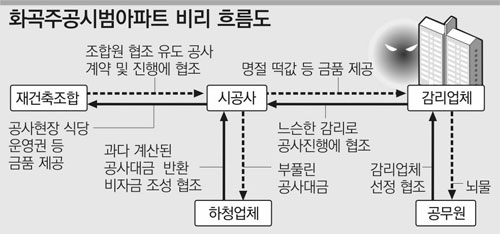시공사 직원들이 하청업체에 공사비를 부풀려 지급한 뒤 일부를 되돌려 받아 비자금을 조성하거나 공사 물량을 많이 주는 대가로 하청업체로부터 금품을 받아 온 사실도 드러났다.