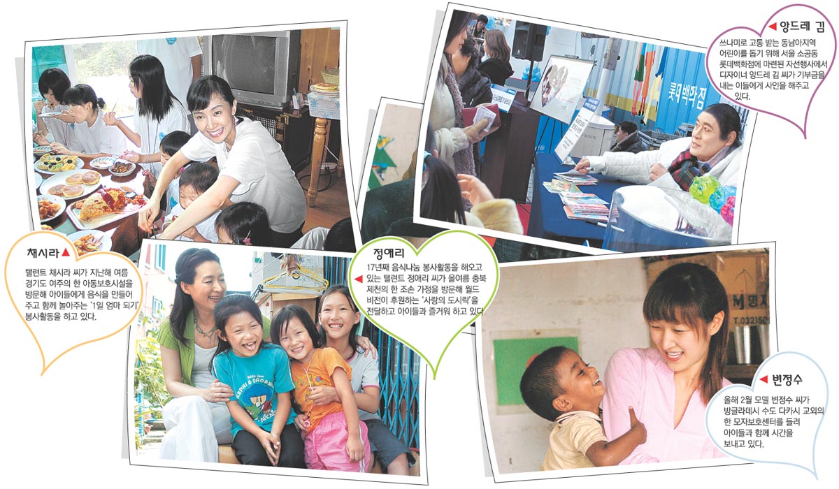 유엔아동기금(유니세프) 친선대사인 앙드레 김 씨를 비롯해 정애리 변정수 채시라 씨 등 사회복지단체에서 홍보대사로 활동하는 스타들의 이야기를 들었다. 》