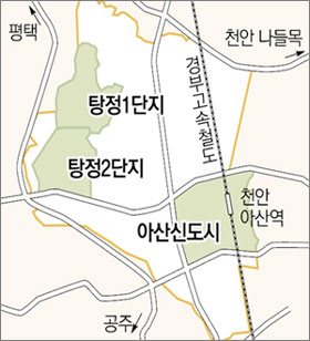한편 정부는 아산신도시 탕정지구 510만 평을 29일 택지개발예정지구로 지정할 예정이다. 아산신도시는 이미 개발 중인 아산신도시 배방지구 111만 평과 탕정지구를 합해 모두 621만 평으로 지금까지 만들어졌거나 개발이 확정된 신도시 중 최대 규모다. 배방지구는 2008년 말, 탕정지구는 2012년 완공이 목표다.