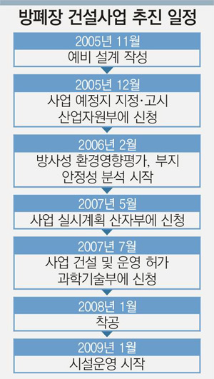 공사 착공은 2008년 1월로 예정돼 있고 방폐장은 2009년 1월부터 가동한다.
