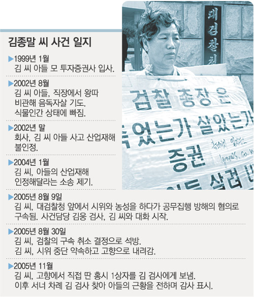 어느덧 김 씨는 김 검사를 ‘검사님’이라고 부르기 시작했다. 김 씨의 구속 기간이 만료될 즈음 김 씨는 변해 있었다. 다시는 시위를 하지 않기로 김 검사와 약속도 했다.