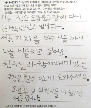 혹시나 하는 마음에 오룡분교 전교생 23명은 각자 한 장씩 엽서를 써서 보냈다. 아이들의 소원은 ‘서울 나들이’.