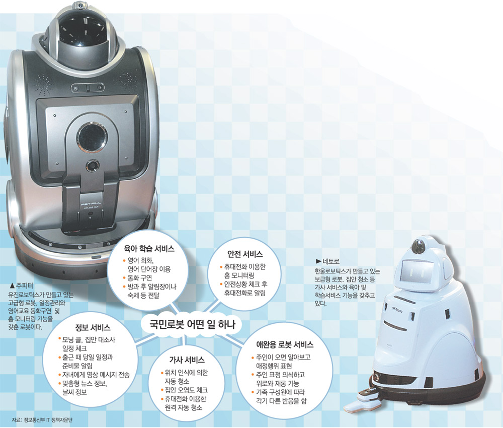 국민로봇은 가정에서 집안청소 등 가사도우미 역할을 하면서 자녀들에게 동화를 읽어 주고, 초보 수준이지만 영어 가정교사 역할도 할 것으로 보인다.