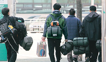 ![]() ‘농성장에서 현업으로.’ 철도 파업 사흘째인 3일 정부와 한국철도공사의 강경 대응 방침이 재확인되면서 파업에 참여했던 KTX 기관사들이 서울역 기관사 승무사무소로 복귀하고 있다. 강병기 기자 |