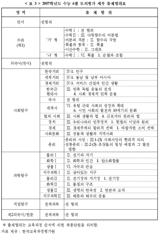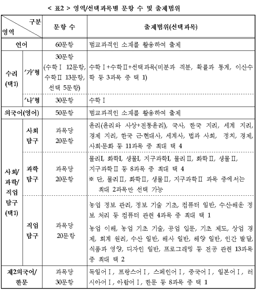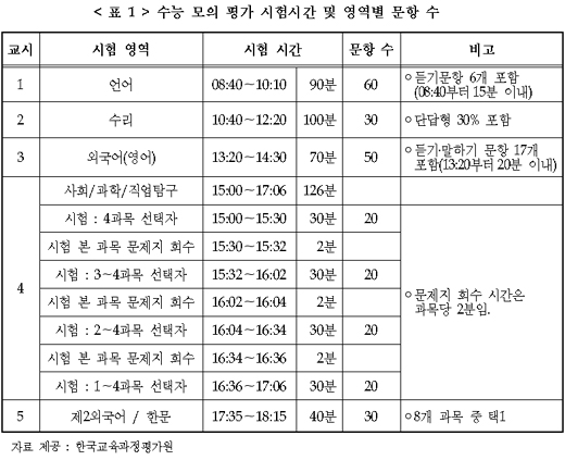 각 영영의 문제와 정답은 시험 당일 매 교시 종료 뒤 교육과정평가원 홈페이지(www.kice.re.kr)에 공개된다.