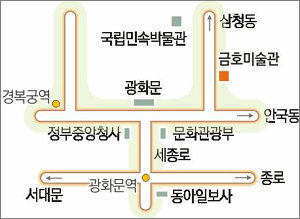 길 하나를 사이에 두고 마주하고 있는 경복궁 돌담과 자연스럽게 어우러지는 미술관. 물끄러미 바라보고 있노라면 이 같은 설계 개념을 어렵지 않게 발견할 수 있다.