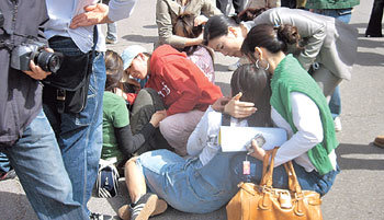 14일 오후 2시경 경기 오산시 양산동 한신대 만우관 강의동 앞길에서 이 학교 김모(19·1학년) 씨가 몰던 SM3 승용차가 도로를 벗어나 휴게공간인 오월 계단으로 굴렀다.