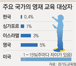 경기도의 25개 교육청에는 지역별로 선발한 영재를 모아 영재교육원을 운영하고 있다. 또 55개 초중고교에서 학교별로 영재를 선발해 영재학급을 운영하고 있다. 영재수업을 받는 학생은 4463명으로 전국에서 가장 많다. 이들은 선행학습이 아닌 원리 이해 위주의 심화 수업을 한다.
