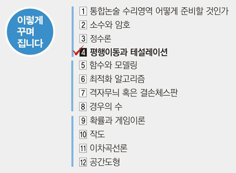 “학교 앞에 보도블록을 깔고자 한다. 보도의 가장자리는 블록을 잘라서 사용할 수 있지만 그 외의 부분은 보도블록을 자르지 않고 틈새가 없게 맞춰 넣어야 한다. 그런데… 정사각형으로 제작되어야 할 보도블록들이 다른 모양의 사각형으로 제작되었다…. 제작된 블록들은 크기와 모양이 동일하다고 한다…. 잘못 제작된 보도블록이 어떤 모양의 사각형일 때 그대로 사용할 수 있을는지, 가장 일반적인 조건을 설명하시오.”