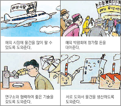 ※ 우리 시·도에서 생산한 물건을 외국에 내다 파는 생산 활동을 돕는 다음 그림을 보고, 물음에 답하세요.