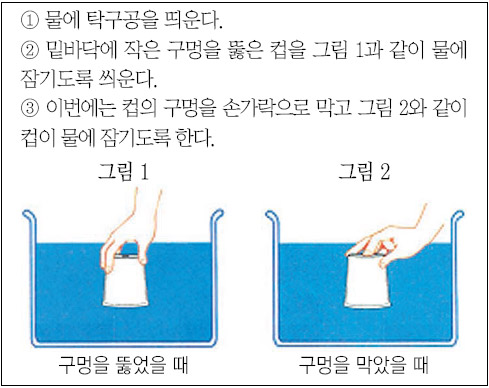 가. 두 그림과 같은 실험에서 탁구공의 위치는 각각 어떻게 다를까요?