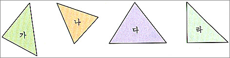 2. 삼각형 ‘라’가 삼각형 ‘가, 나, 다’와 다른 점이 있다면 무엇일까요?