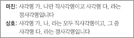 3. 이 사각형을 정사각형과 직사각형으로 바르게 분류한 사람은 누구이고, 그렇게 생각한 까닭은 무엇인가요?