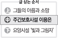 물론 주간보호시설도 문제가 없는 것은 아니다. 입소 자격이 거동과 프로그램 참여가 가능한 경증환자로 제한돼 중증환자는 이용할 수 없다. 또 일부 지역의 경우 운영시간이 오전 10시부터 오후 4시까지로 너무 짧아 맞벌이 부부에겐 그림의 떡이다. 전국적으로 주간보호센터는 346곳에 5590명의 치매노인이 이용하고 있다.