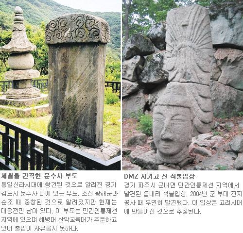 DMZ는 고구려 백제 신라가 한 번씩 차지했던 삼국시대 요충지다. 조유전 한국토지박물관장은 1990년부터 10년 동안 국립문화재연구소가 실시한 군사보호구역 내 문화유산 지표조사와 2004년 육군사관학교 화랑대연구소가 실시한 문화재 지표조사를 통해 발굴된 불교문화 유산을 공개했다.